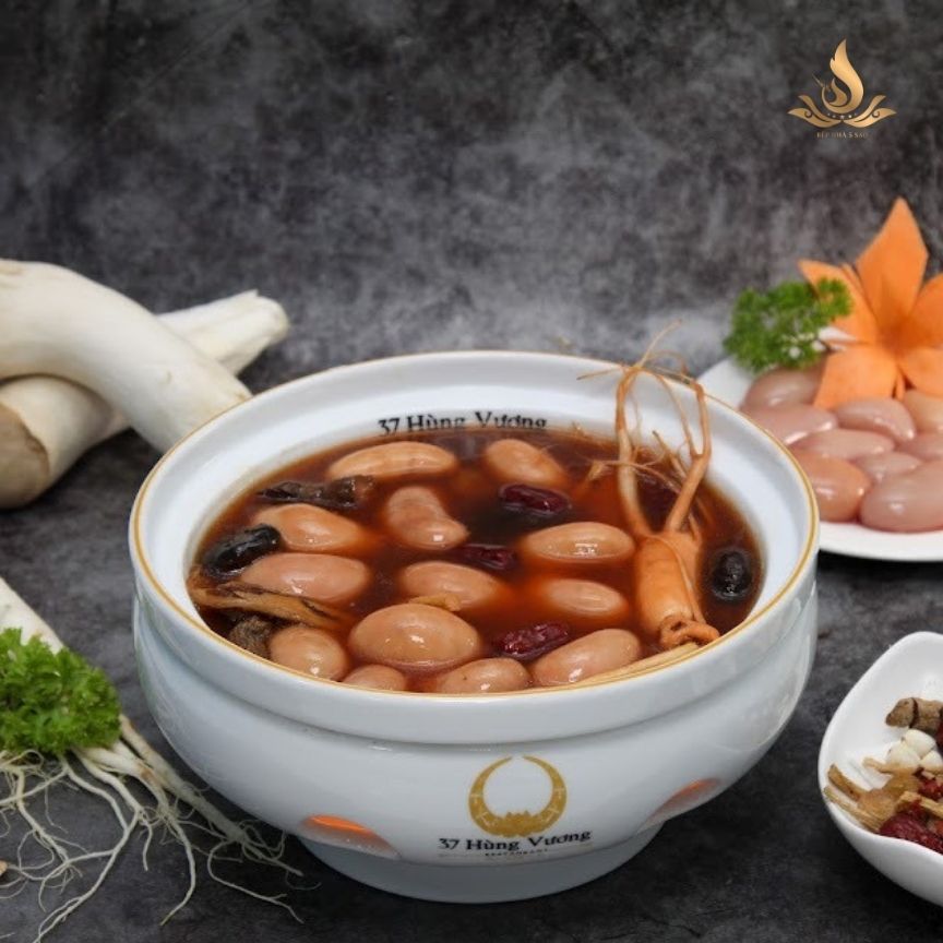 – Dùng nước hầm 37A Hùng Vương thượng hạng được hầm 48h với những nguyên liệu quý hiếm.